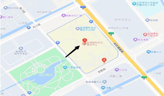 盐城国际会展中心位于河东片区都市走廊内,西侧紧邻盐城经济技术开发区招商中心大厦和东方公园,是盐城市重点工程实施项目。会展中心建筑面积5万平方米,占地面积16万平方米。主体一层,局部二层,为大跨度钢结构建筑,内设国际标准展位1000个,分会展、会议、商业卖场等功能区。室外广场10万平方米,兼集会、展览、游憩等功能于一体。